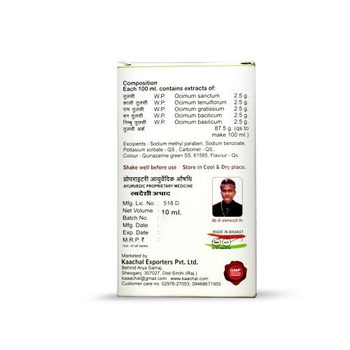 Achal Tulsi Advance is formulated to support overall wellness, with a focus on respiratory comfort, mild immunity support, and daily vitality. It helps your body stay ready against everyday environmental stress and supports normal respiratory and throat comfort.