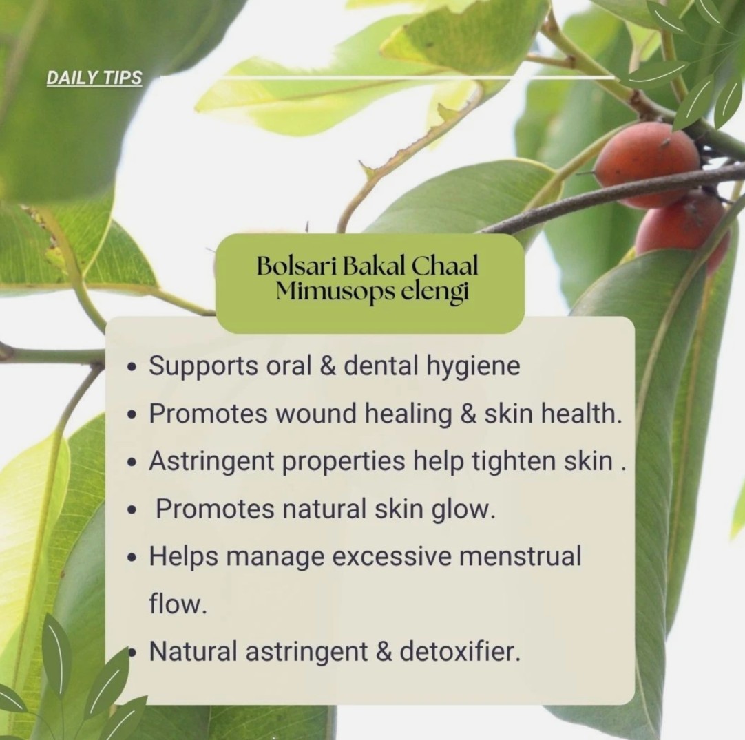 Bakul Chaal (also known as Mimusops Elengi or Indian Medlar Tree bark) is a time-tested herb , widely used for its oral care, skin healing, and reproductive health benefits. Its bark is valued for its astringent, cooling, and healing properties and is often included in traditional remedies for gum disorders, wound healing, and gynecological health.