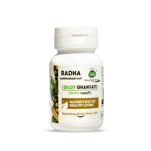 Radha Giloy Ghanvati is a formulated tablet designed to support overall wellness — helping maintain healthy digestion, respiratory comfort, and general body balance. It offers potential support in improving digestion, reducing acidity or digestive discomfort, and promoting regular digestive function. The formulation may also help support the body’s natural defense system, aiding in overall well-being and resilience.