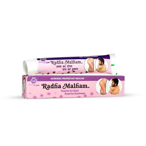 Radha Malham is a versatile skin ointment designed to address a wide range of common skin concerns — from itching, irritation, and rashes to acne, dry or cracked skin, and general skin discomfort. Its gentle formulation works to soothe stressed skin, calm inflammation, and help restore skin comfort and smoothness.