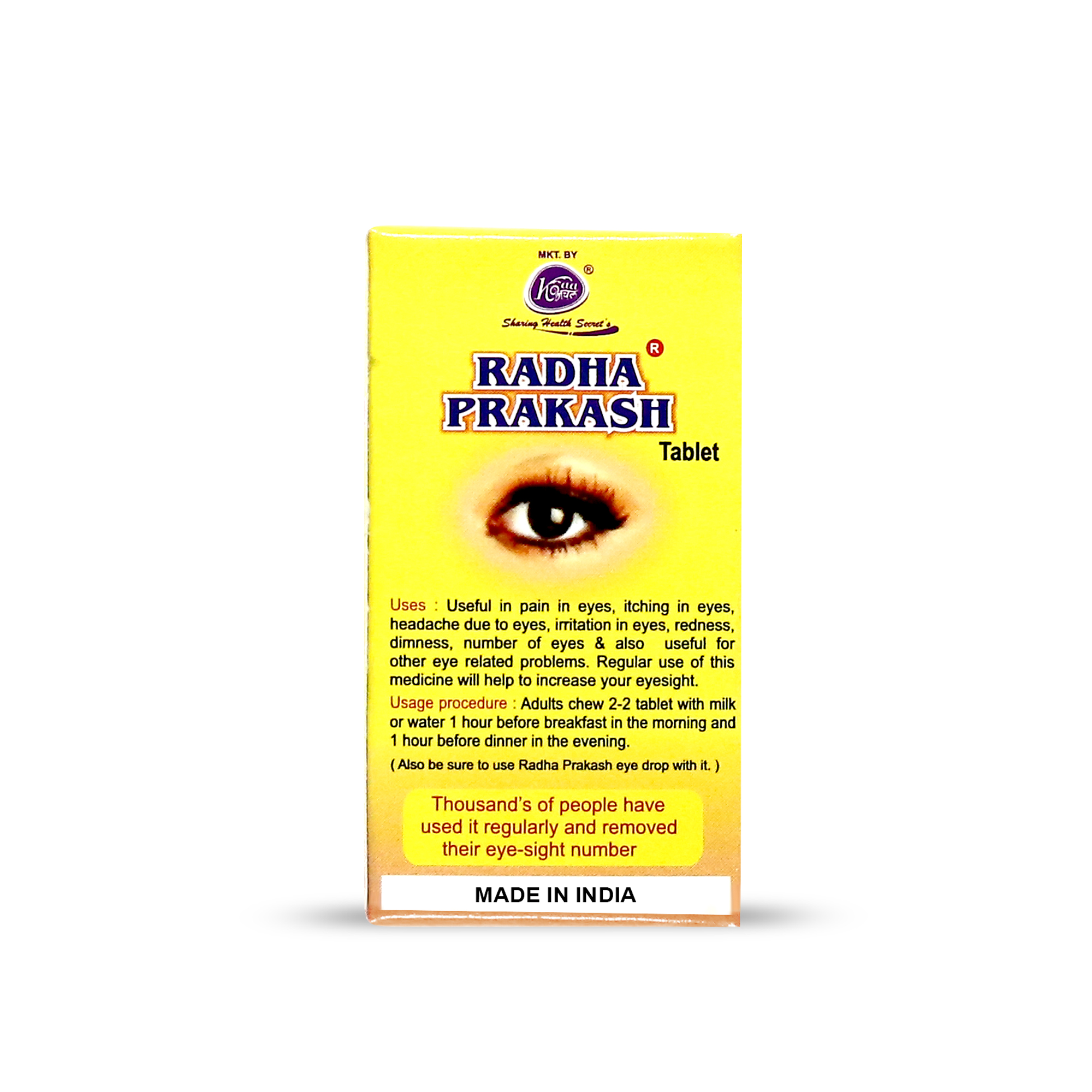 Radha Prakash 2-Pack Eye Drops are formulated to help refresh and soothe tired, irritated, or strained eyes — especially for people exposed to dust, pollution, screens or long hours outdoors. These drops help relieve common eye symptoms such as redness, watering, irritation, and heaviness, offering gentle comfort and clearer vision when eyes feel stressed or fatigued.